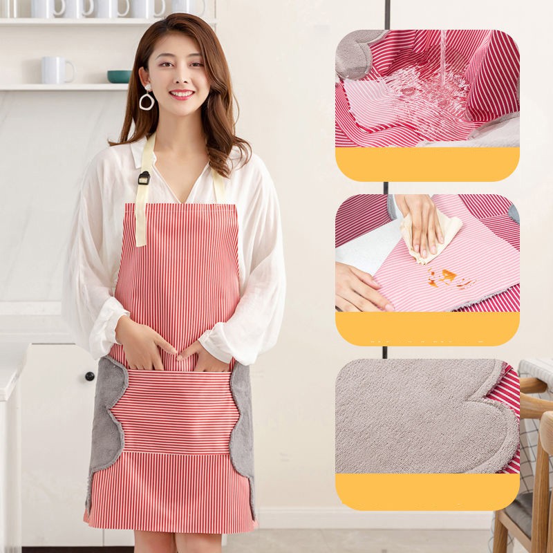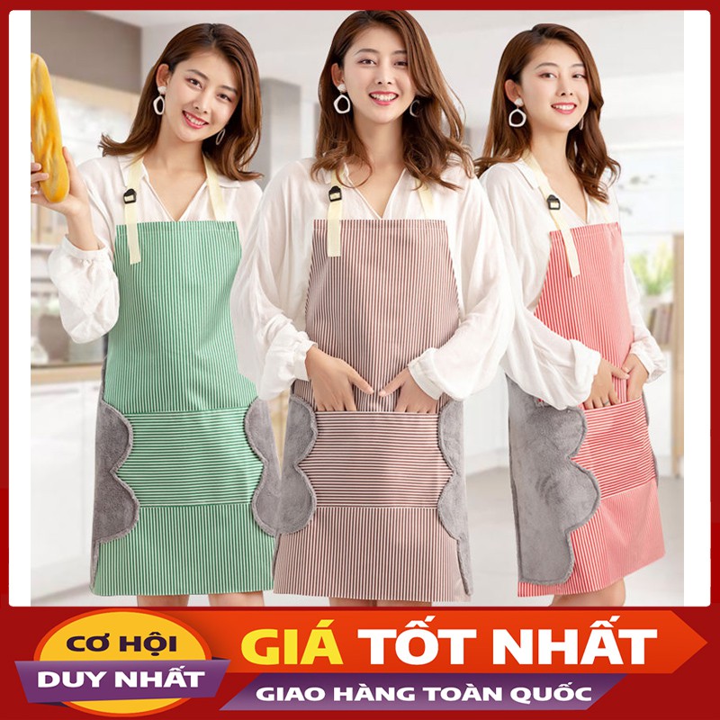 - Tạp Dề Chống Thấm với thiết kế thông minh khi được may kèm vải bông 2 bên hông giúp bạn lau tay nhanh chóng và sạch sẽ khi nấu ăn. Bên cạnh đó chiếc tạp dề này còn thiết kế cho bạn chiếc túi to để đựng điện thoại rất tiện lợi.