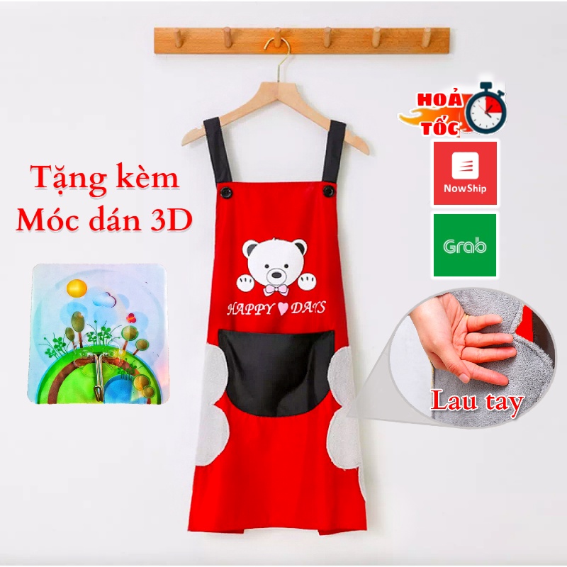 Tạp dề chống thấm nước, dầu ăn, có chỗ lau tay tiện dụng dễ thương hình gấuTặng kèm : Móc dán tường 3D (Ngẫu nhiên)