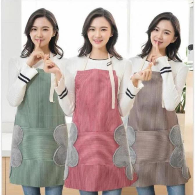 Tạp Dề Chống Thấm Nước Có Lau Tay Họa Tiết Thỏ , Kẻ Sọc , Cooking