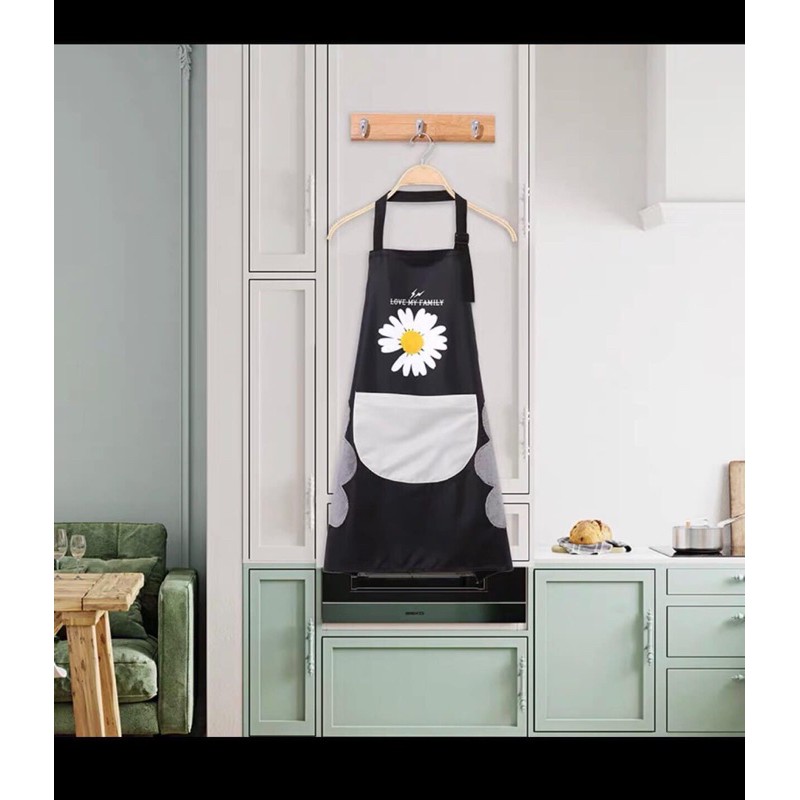 + Tạp dề màu sắc nhã nhặn, trang trí hoa cúc dễ thương và thiết kế tiện dụng khiến cho việc bếp núc trở nên thú vị hơn