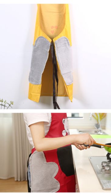 Giới thiệu Tạp dề chống thấm nước hình gấu thiết kế khăn lau tay 2 bên tiện lợi