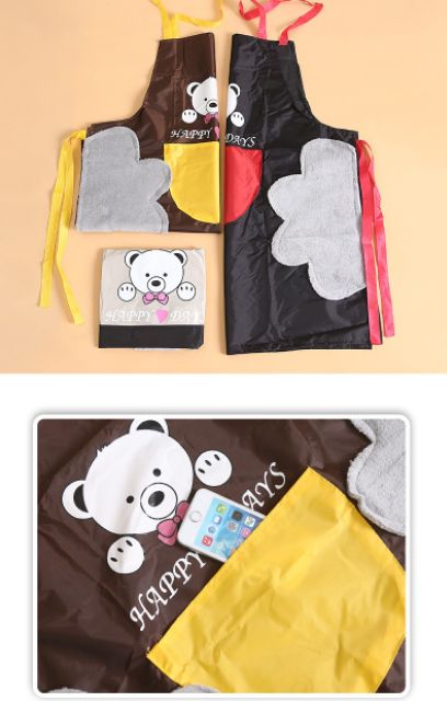 Nhà cửa & Đời sống > Dụng cụ nhà bếp > Tạp dề & gắng tay nấu nướng || Tạp dề chống thấm nước hình gấu thiết kế khăn lau tay 2 bên tiện lợiCòn hàng