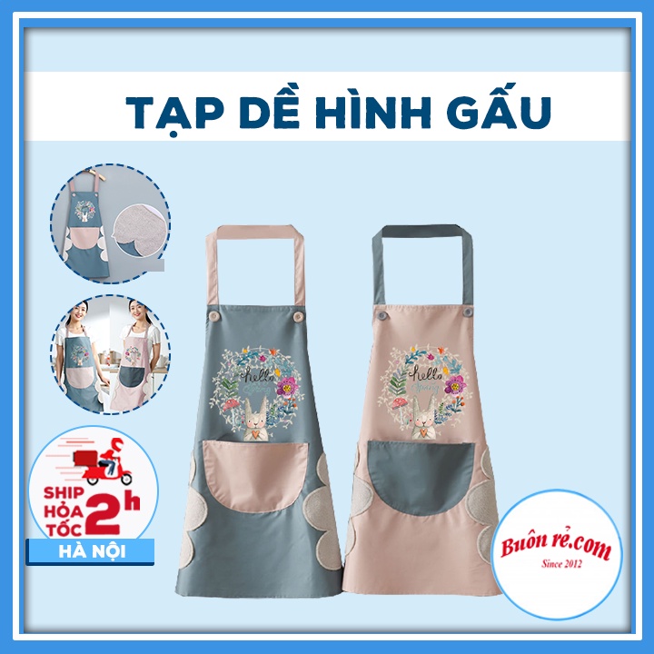 Tạp dề chống thấm nước họa tiết thỏ dễ thương tiện lợi -Tạp dề có túi để điện thoại phong cách Hàn 01519