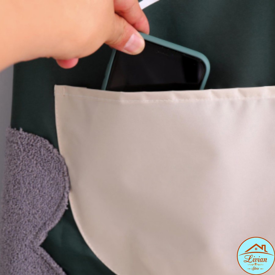 Nhà cửa & Đời sống > Dụng cụ nhà bếp > Tạp dề & gắng tay nấu nướng || Tạp dề chống thấm nước phong cách Hàn quốc, có túi lau tay tiện dụngCòn hàng