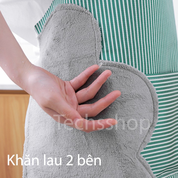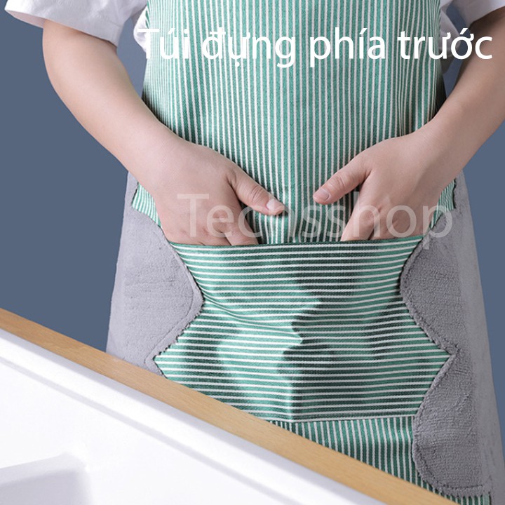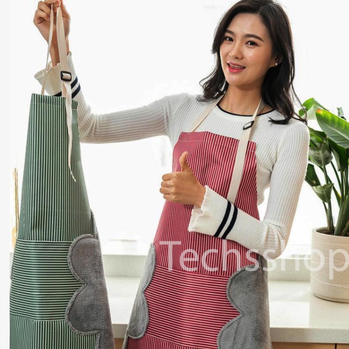 Giới thiệu Tạp Dề Có Khăn Lau Tay Và Túi Đựng Đồ Hình Sọc Carô Phong Cách Hàn Quốc - Quà Tặng Vợ, Mẹ Ngày Phụ Nữ