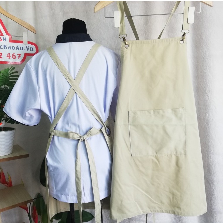 - Tạp dề vải kaki pangrim cotton với thiết kế đơn giản, dạng tạp dề yếm hay còn gọi là tạp dề đeo cổ. Mang lại nhiều giá trị tiện dụng cho người mặc. Bảo vệ tốt trang phục bên trong hiệu quả, tránh bụi bẩn.