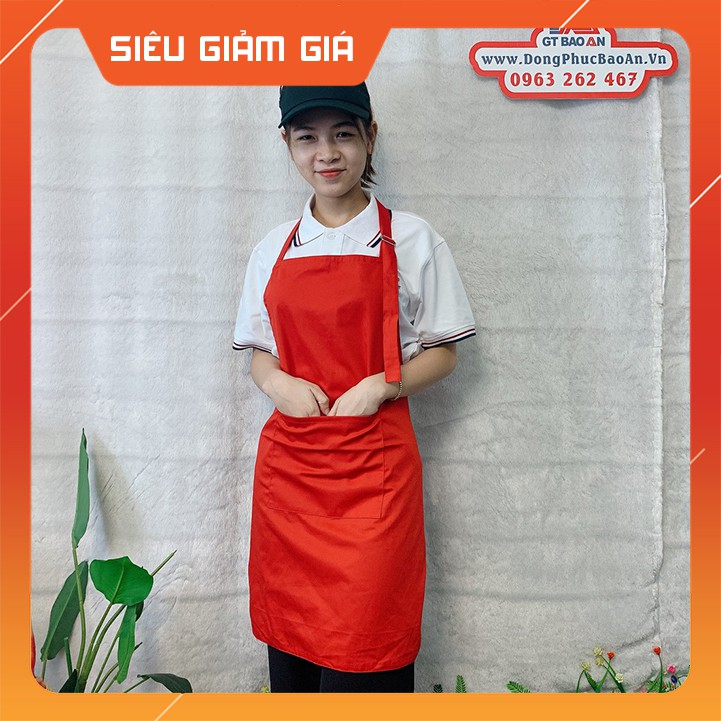 Tạp Dề Dài Màu Đỏ Nhân Viên Phục Vụ Nhà Hàng Quán - Tạp Dề Giá Rẻ