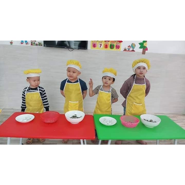 sỉ bộ tạp dề cho bé mầm non khi vào bếp chuẩn bị món ăn cùng cô giáoBộ tạp dề gồm mũ + tạp dề