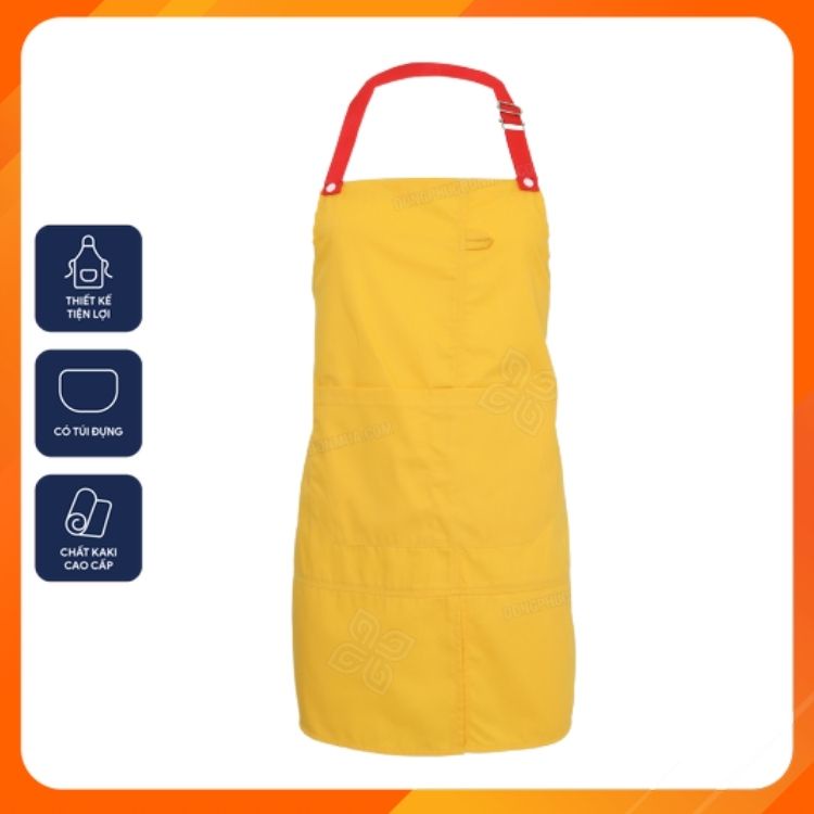 ✔️ Thiết kế: Tạp dề trơn vải kaki với thiết kế đơn giản, dạng tạp dề yếm hay còn gọi là tạp dề đeo cổ rất tiện dụng và mặc nhanh.