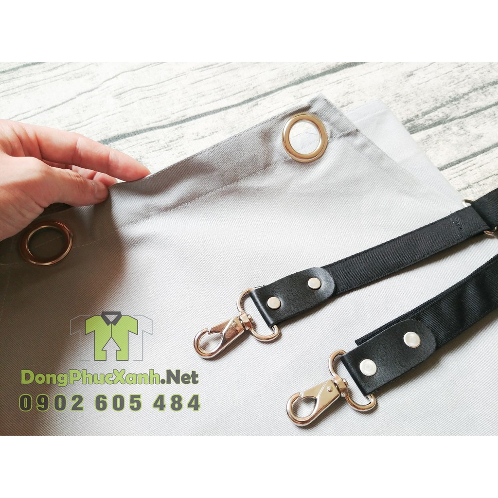 Tạp dề trơn không có logo, Dây choàng qua cổ có tăng đơ điều chỉnh cao thấp phù hợp cho Nam/Nữ chiều cao từ 1m50-1m75.