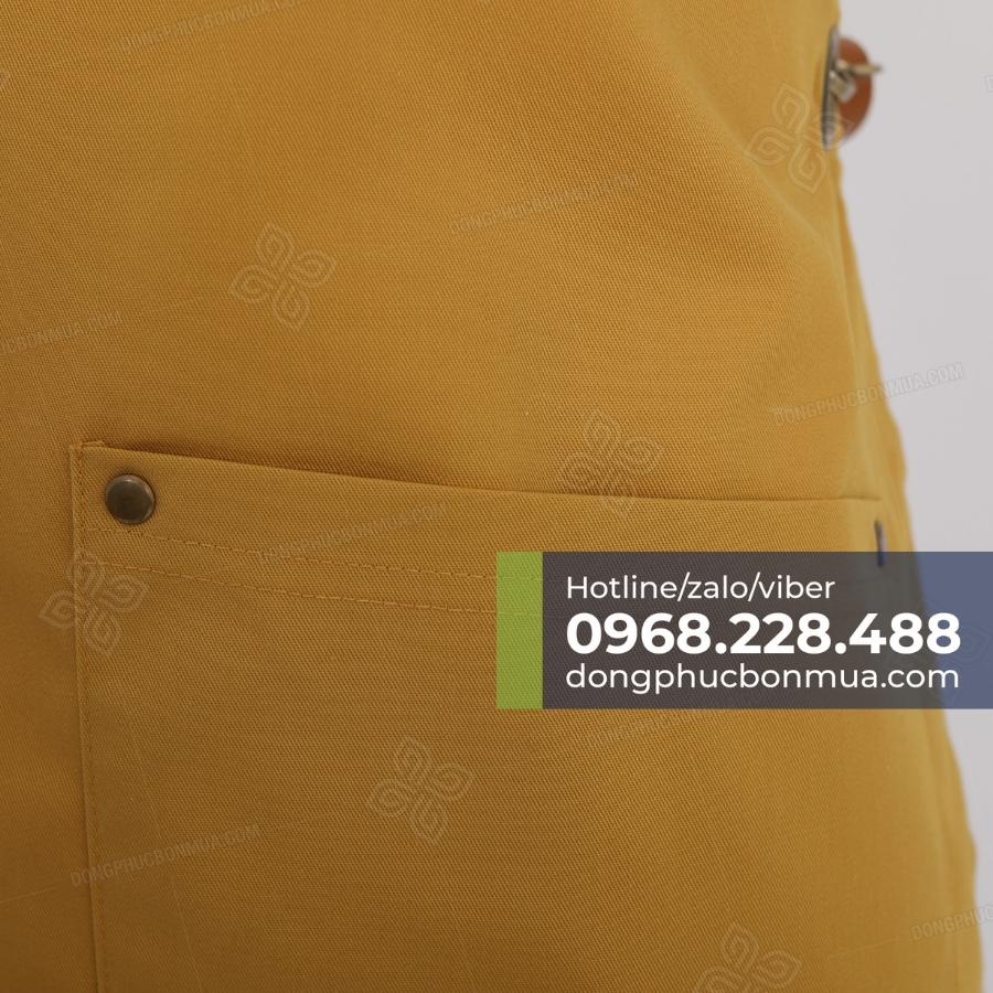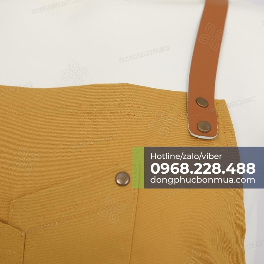 Tạp dề đồng phục chất liệu vải kaki phối dây da đẹp - Thiết kế túi độc đáo, kiểu dáng mới lạ - Đính khuy đồng nổi bật