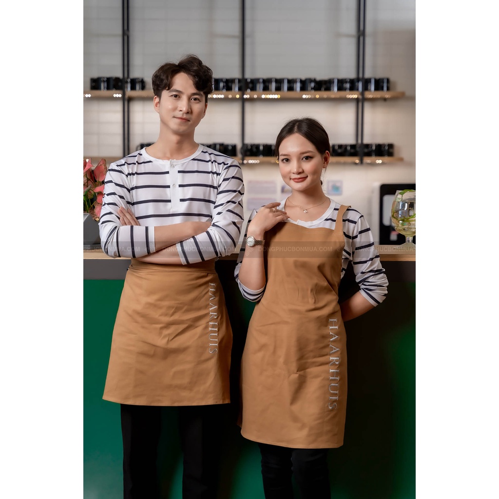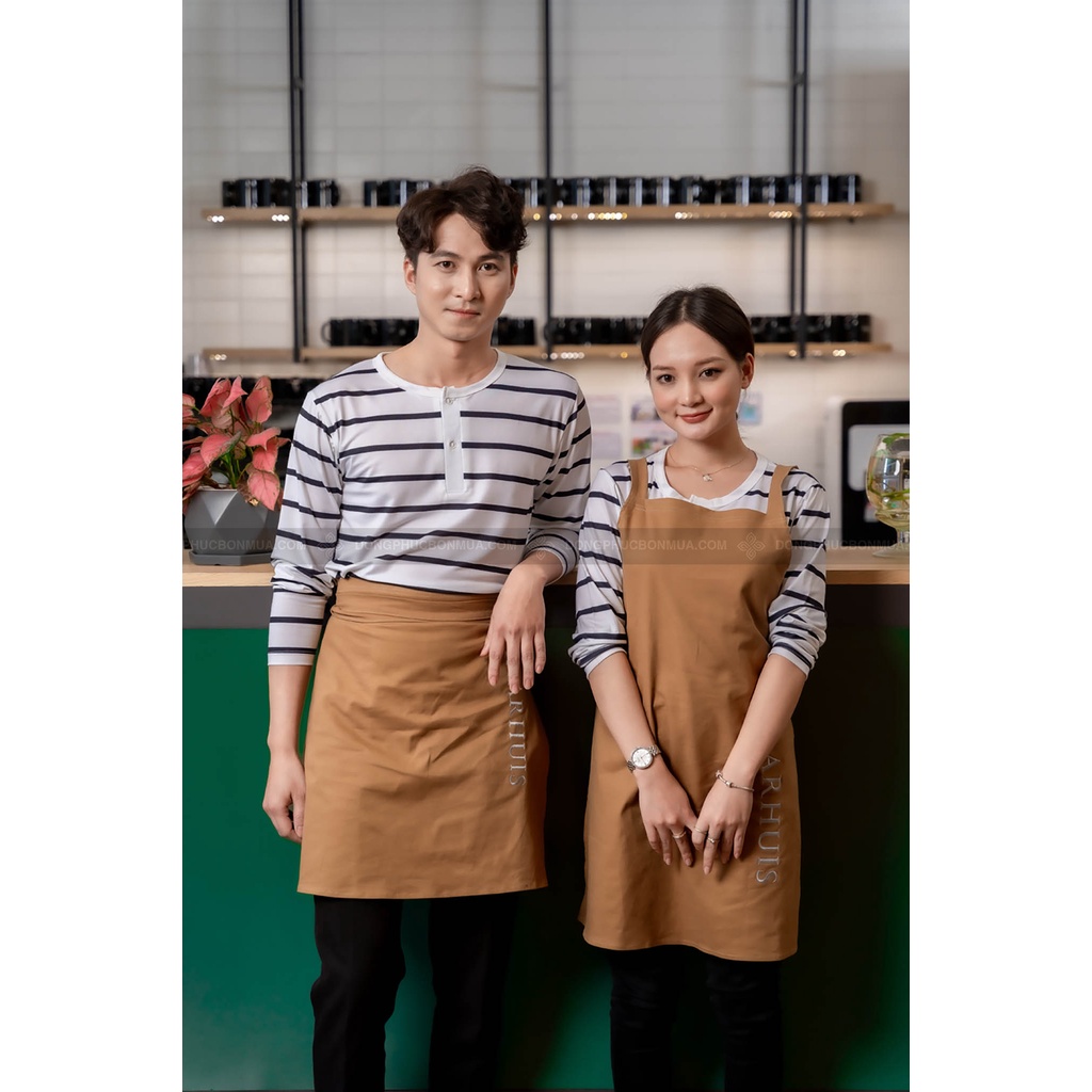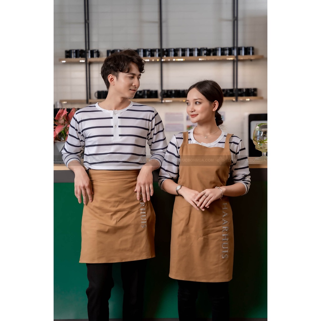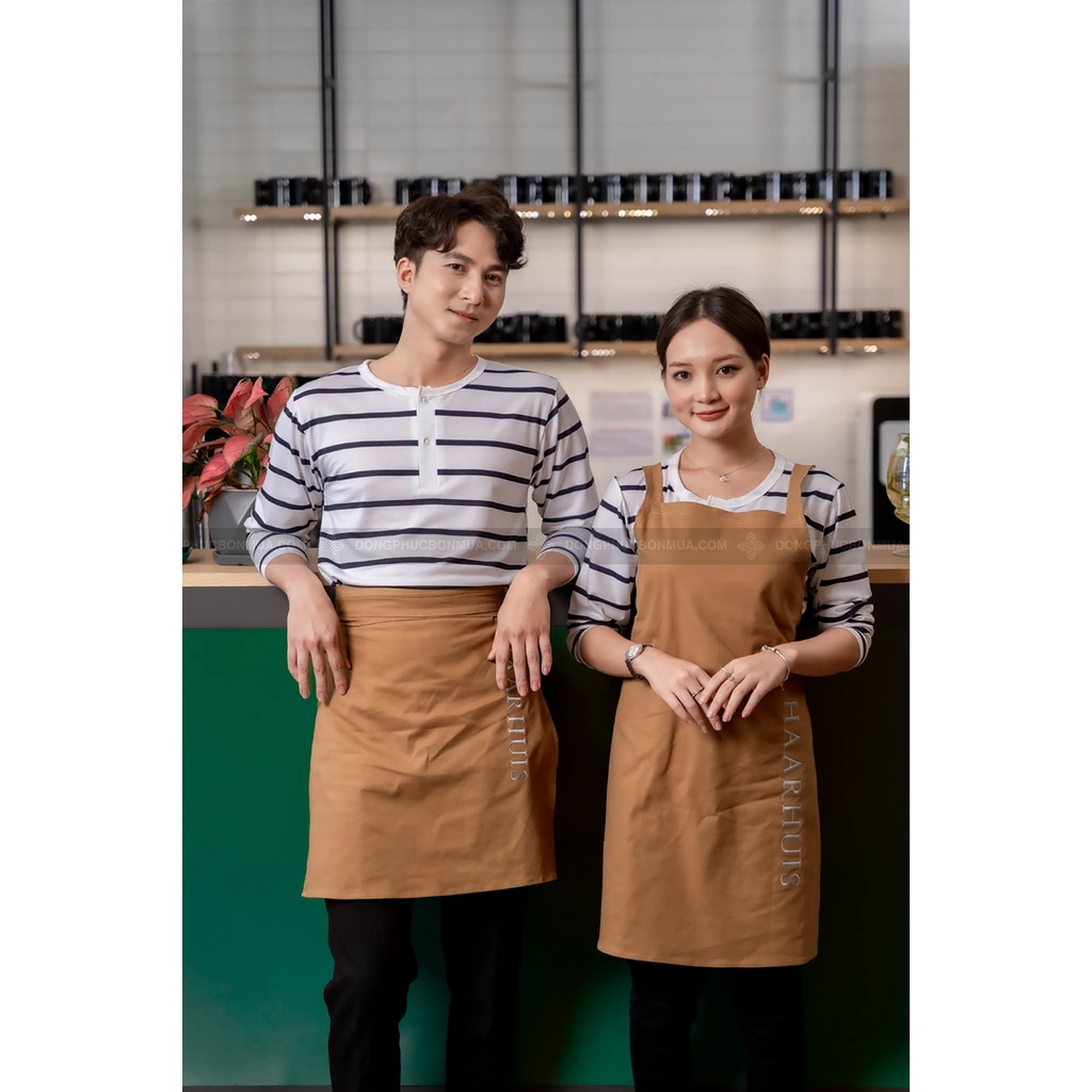 Tạp dề đồng phục cho quán café, nhà hàng dành cho nam nữ - Màu nâu, chất liệu kaki cao cấp, thêu chữ theo yêu cầu