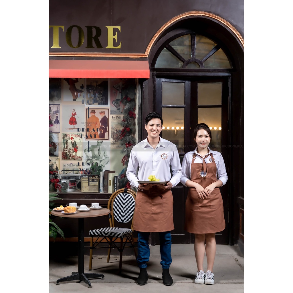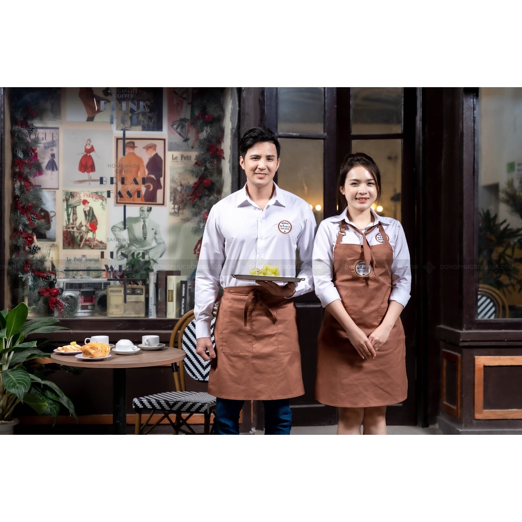 Tạp dề đồng phục nhà hàng, quán café -Màu nâu cafe chất liệu kaki hàng cao cấp - Dáng ngắn và dáng dài tùy chọn