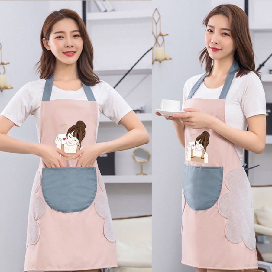 Nhà cửa & Đời sống > Dụng cụ nhà bếp > Tạp dề & gắng tay nấu nướng || Tạp dề đồng phục,tạp dề nấu ăn chống thấm có túi và lau tay họa tiết cố gái búi tóc đáng yêuCòn hàng