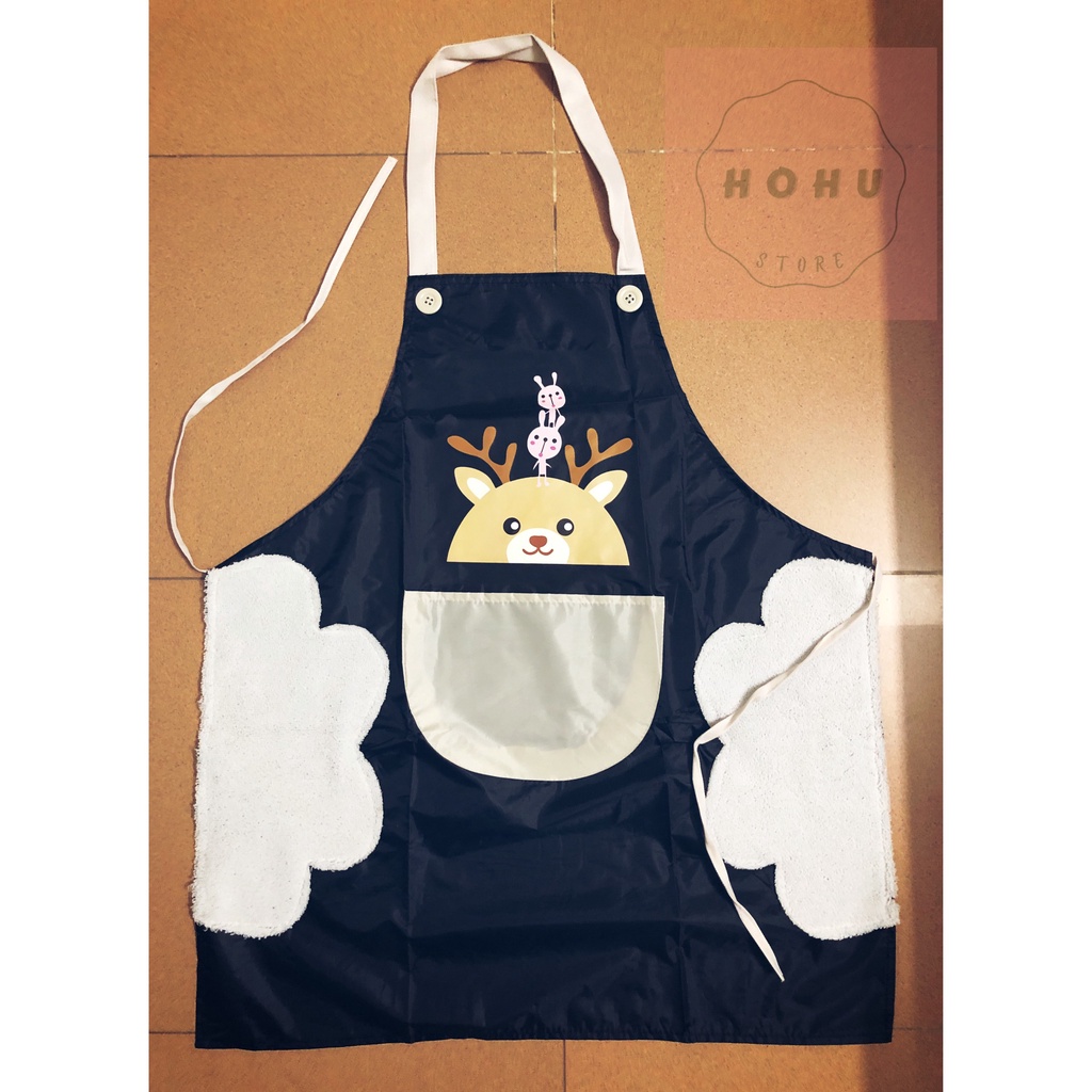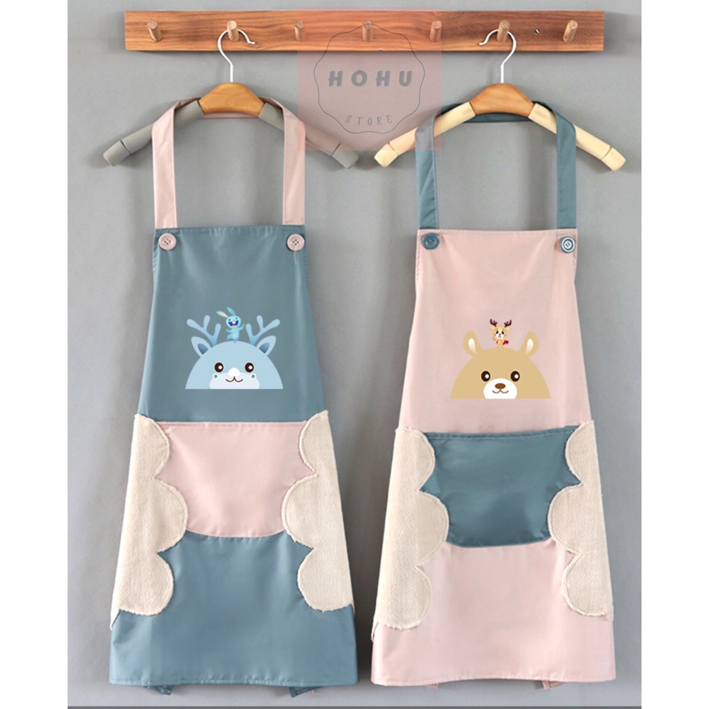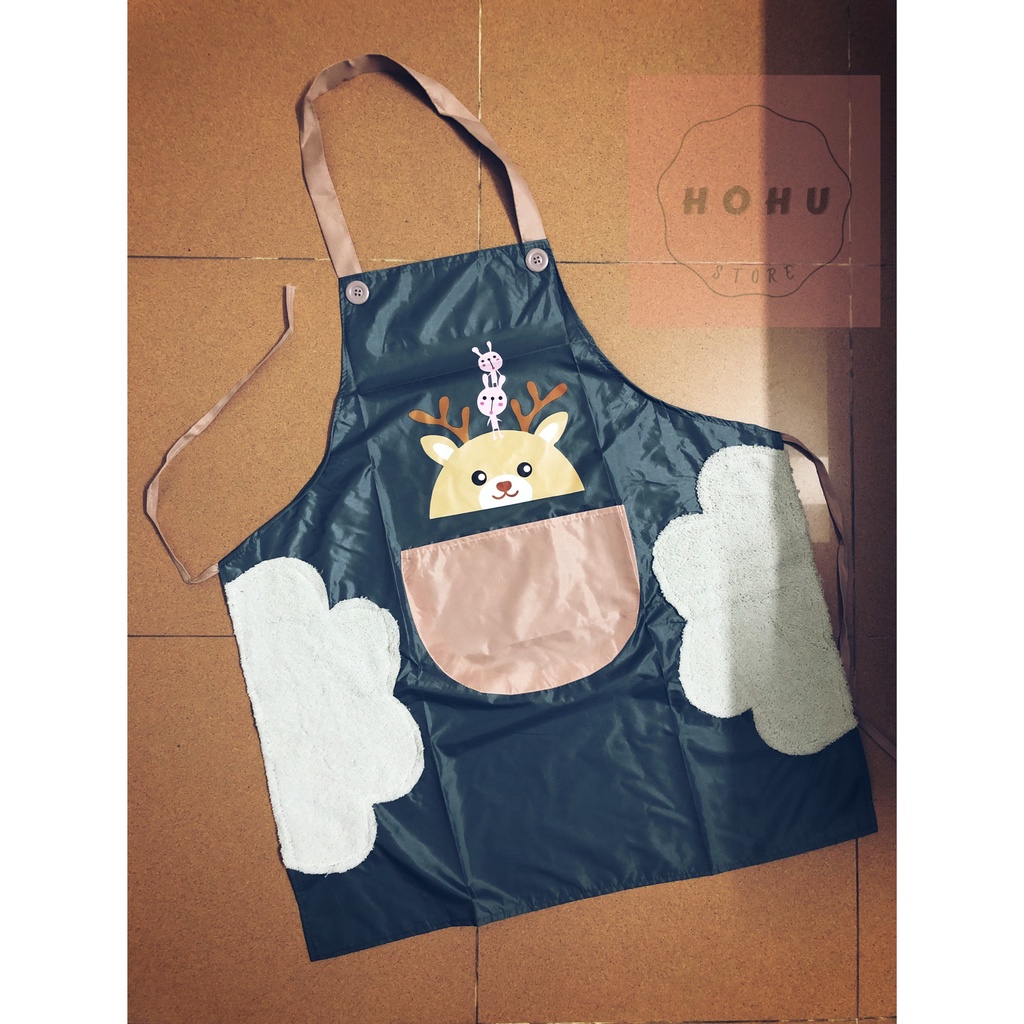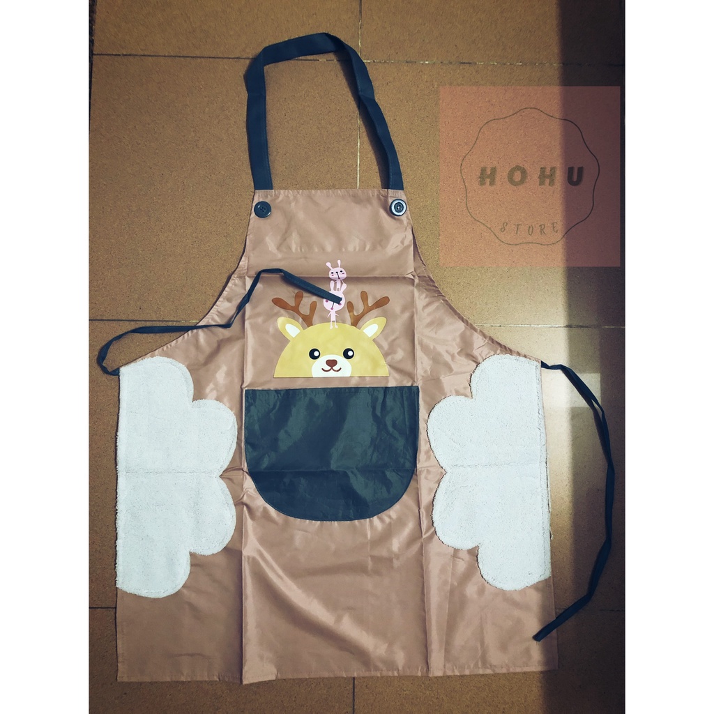 - Mẫu mã: Tạp dề hình Gấu lai Tuần lộc có túi trước ngực, vải bông lau tay 2 bên hông
