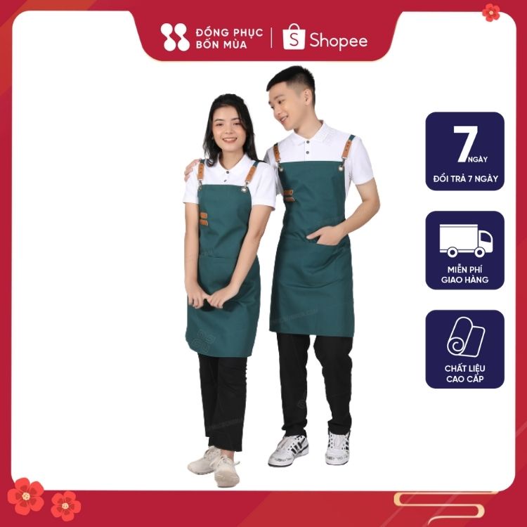 ✔️ Quy cách: Tạp dề yếm, có nút tăng giảm độ dài, có túi tiện dụng để đựng sổ ghi chép, sổ order, điện thoại, ipad…