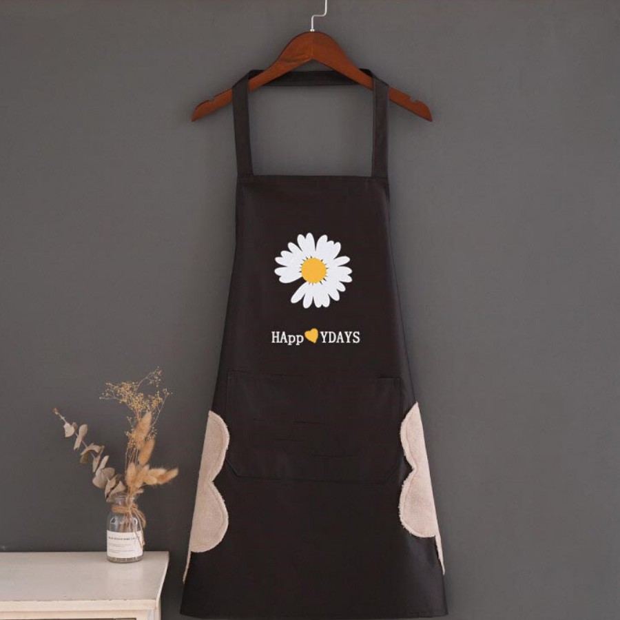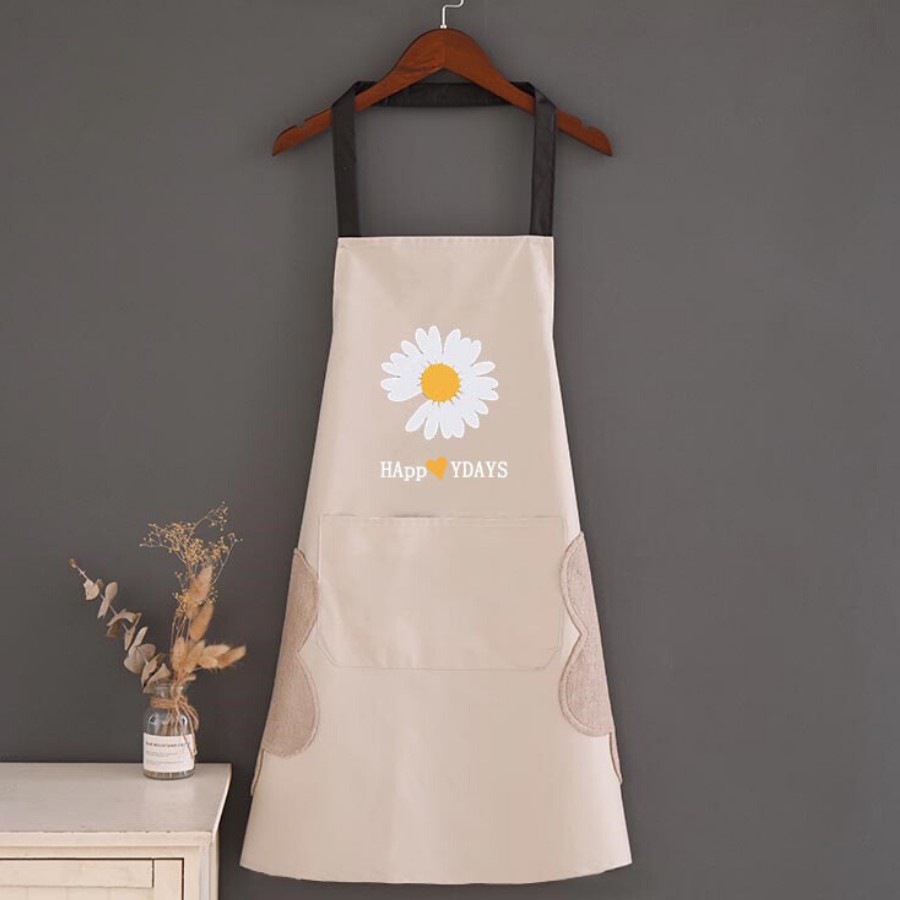 + Tạp dề màu sắc nhã nhặn, trang trí hoa cúc dễ thương và thiết kế tiện dụng khiến cho việc bếp núc trở nên thú vị hơn