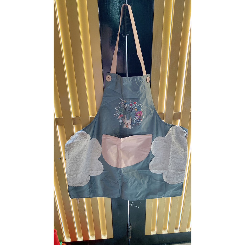+ Tạp dề được làm từ chất liệu polyester dày dặn, chống bám bẩn, chống nước