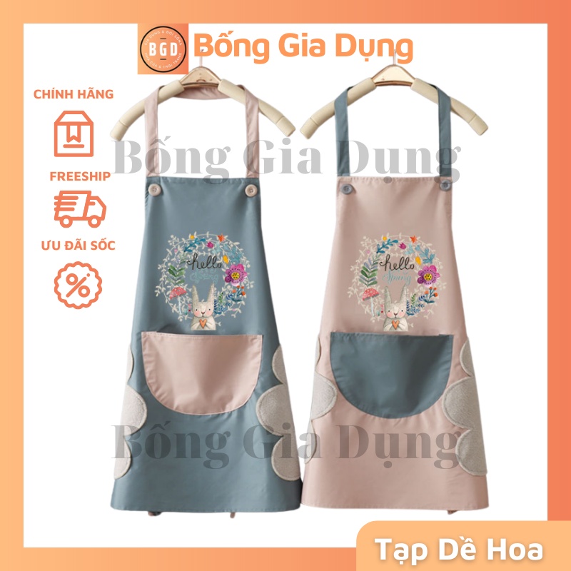 Tạp Dề Hình Thỏ Chống Thấm Nước Kèm Khăn Lau Tay Bên Hông Có Túi Để Đồ Tiện DụngĐặc điểm nổi bật: