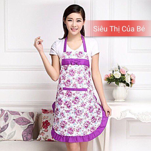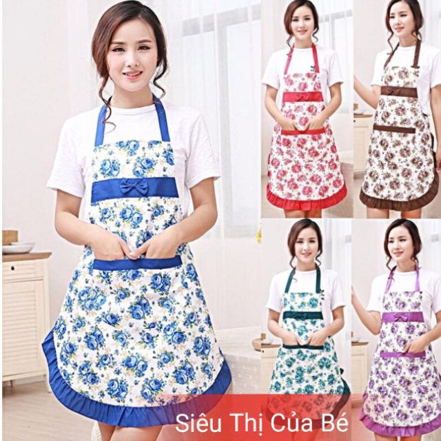 Tạp dề hoa có túi phía trước: Chất liệu chất vải ít thấm nước nên sẻ giảm tối đa vết dầu mỡ, nước thấm vào quần áo.Màu sắc, họa tiết nhã nhặn cho các bạn thoải mái lựa chọn: xanh dương xanh lá ,tím ,đỏ ,nâu