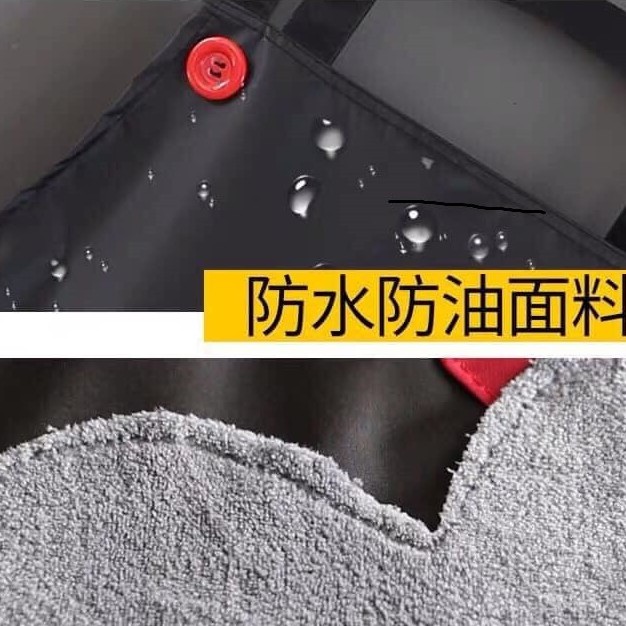 + Tạp dề được làm từ chất liệu polyester dày dặn, chống bám bẩn, chống nước