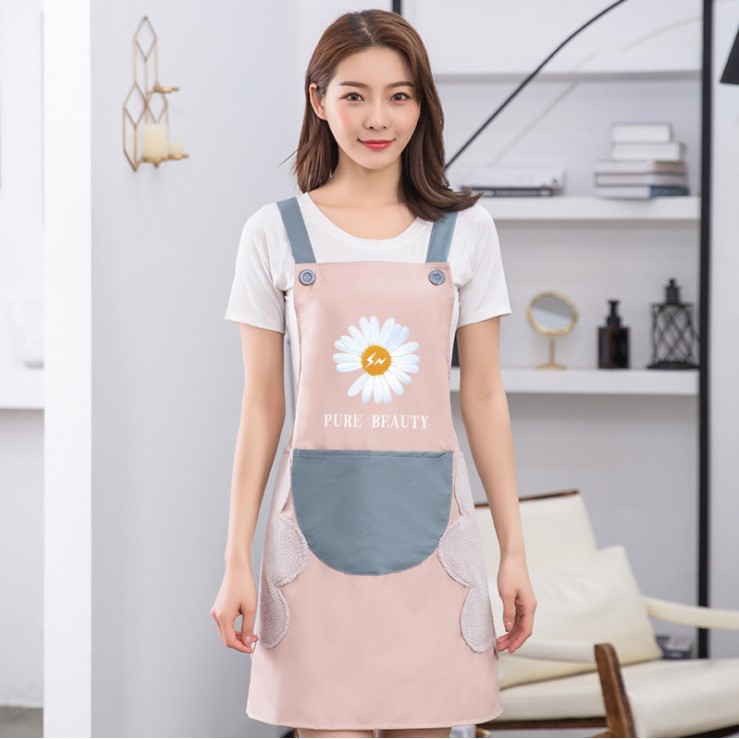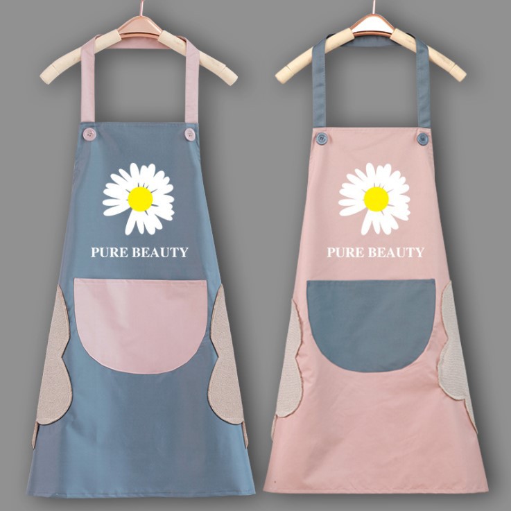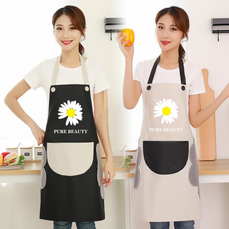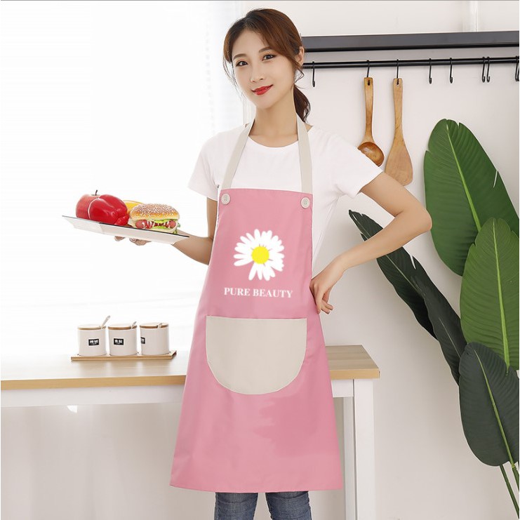 + Tạp dề màu sắc nhã nhặn, trang trí hoa cúc dễ thương và thiết kế tiện dụng khiến cho việc bếp núc trở nên thú vị hơn