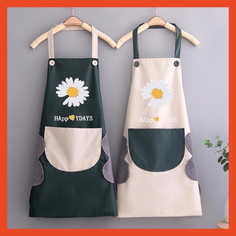 Giới thiệu Tạp dề hoa cúc có túi và lau tay ( giao màu ngẫu nhiên )