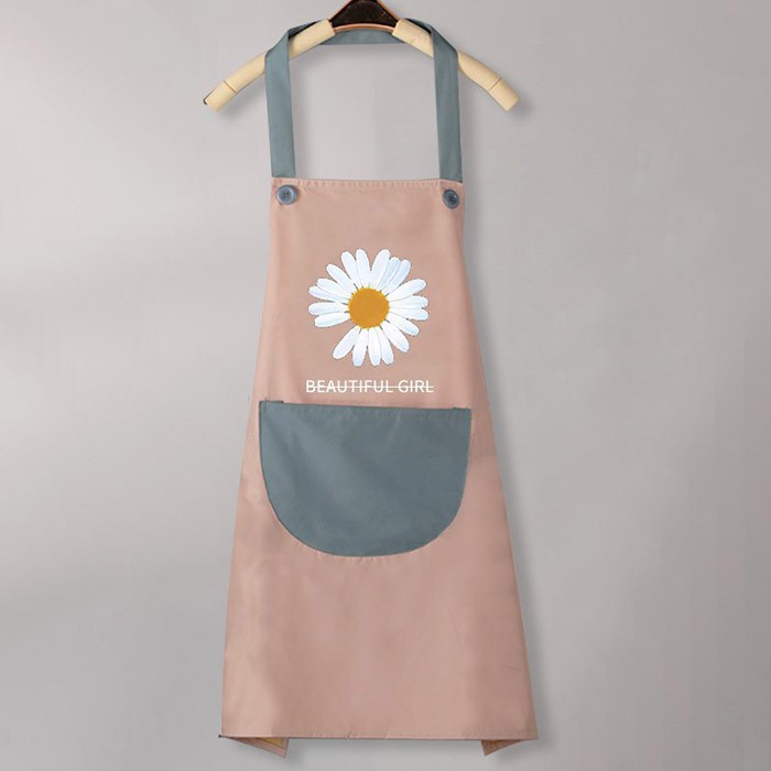 - Tạp dề màu sắc nhã nhặn, trang trí hoa cúc dễ thương và thiết kế tiện dụng khiến cho việc bếp núc trở nên thú vị hơn
