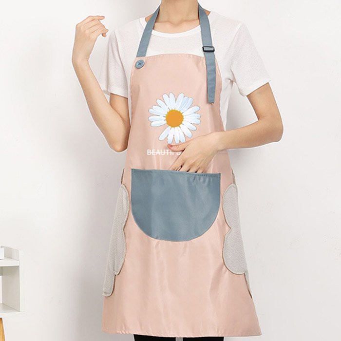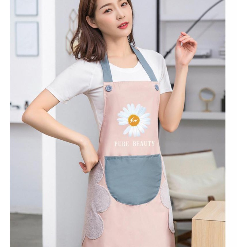 Tạp dề hoa cúc mẫu mới có chỗ lau tay tiện lợi