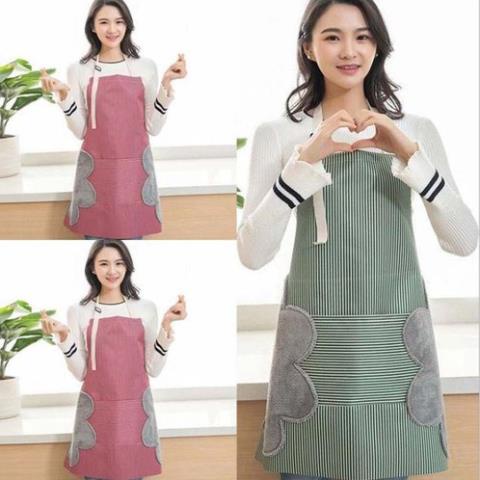 -Tạp dề chống thấm nước, chống thấm dầu thiết kế 2 khăn lau tay San Ho phong cách Hàn Quốc tạo cảm giác thật thoải mái cho chị em nội trợ.