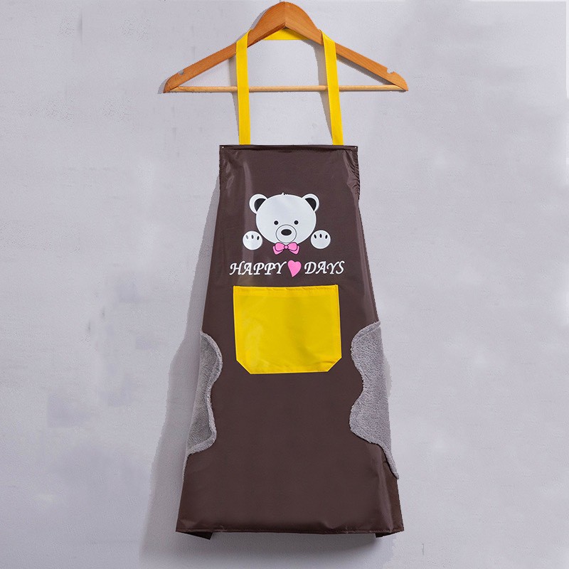 - Tạp dề chống thấm nước, thấm dầu có thiết kế khăn lău hai bên eo vô cùng tiện lợi. Chất liệu nhung san hô mềm mại có khả năng thấm hút tốt và mềm dịu với da tay của bạn.