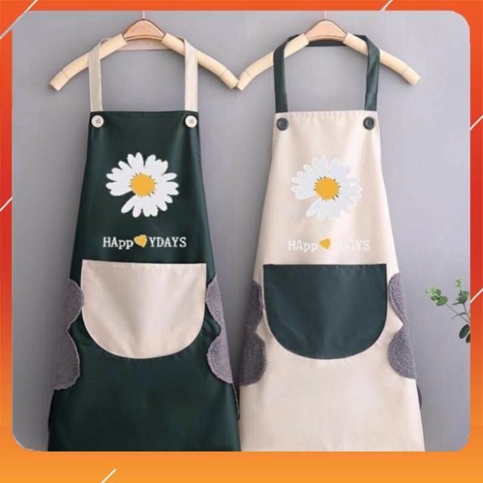 Nhà cửa & Đời sống > Dụng cụ nhà bếp > Tạp dề & gắng tay nấu nướng || Tạp dề hoa cúc phong cách Hàn Quốc, có túi đựng điện thoại, 2 bên có bông lau thấm hút (sỉ lẻ)Còn hàng