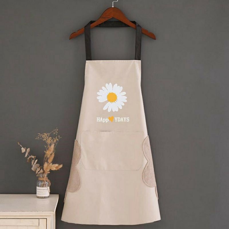+ Tạp dề màu sắc nhã nhặn, trang trí hoa cúc dễ thương và thiết kế tiện dụng khiến cho việc bếp núc trở nên thú vị hơn