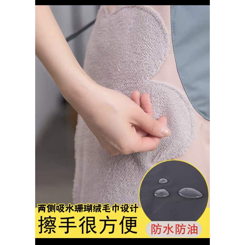 + Tạp dề được làm từ chất liệu polyester dày dặn, chống bám bẩn, chống nước