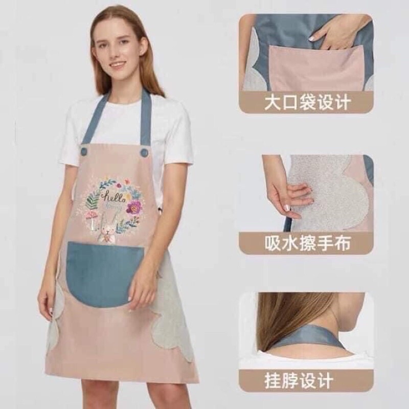 THÔNG TIN SẢN PHẨM- Sản phẩm: Tạp dề, tạp dề chống thấm nước có lau tay họa tiết thỏ xinh kèm hoa thêu nhiều màu sắc