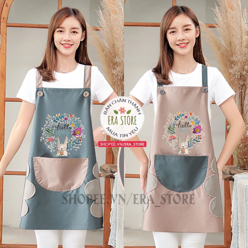 Giới thiệu Tạp dề hoa thỏ không thấm nước lau tay 2 bên, túi đựng phía trước tiện lợi dễ lau sạch