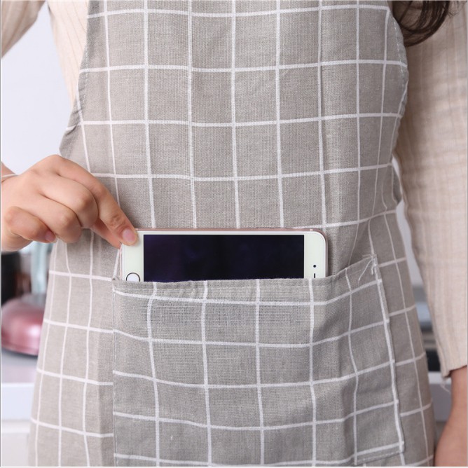 Tạp dề chống thấm nước cao cấp có túi đựng đồ | Tap dề kẻChất liệu vải bông, vải lanh không thấm nước