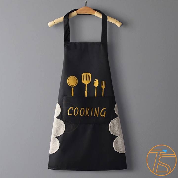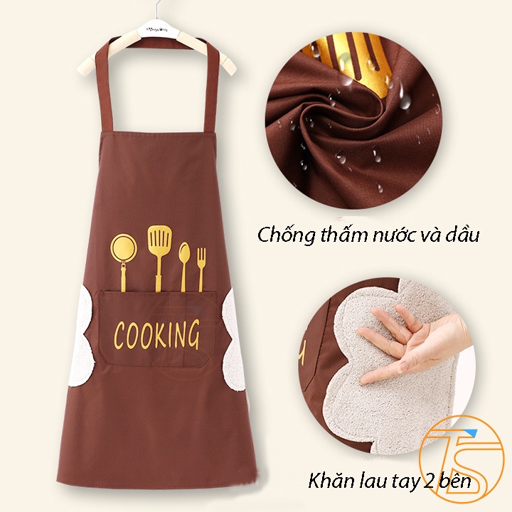 Giới thiệu Tạp Dề Họa Tiết Dụng Cụ Nhà Bếp & Cooking Có Khăn Lau Tay 2 Bên Và Túi Đựng