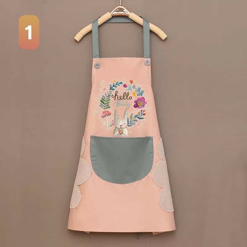 Giới thiệu Tạp Dề Họa Tiết Hoa Thỏ Chống Thấm Có Túi Để Điện Thoại Và Chỗ Lau Tay Tiện Lợi