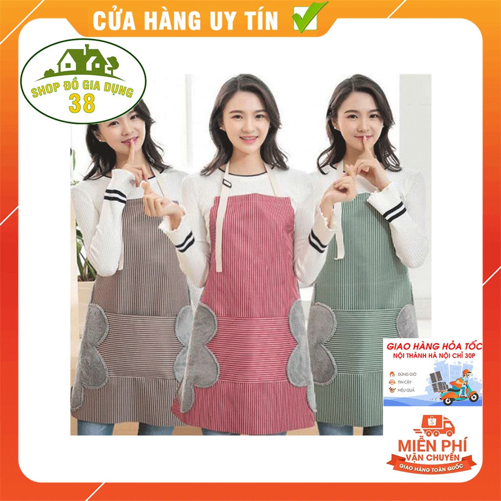 Tạp Dề Họa Tiết Kẻ Chống Thấm Nước,Dầu Mỡ Có Khăn Lau Tiện LợiTạp dề chống thấm nước, dầu mỡ phong cách hàn quốc dễ thương
