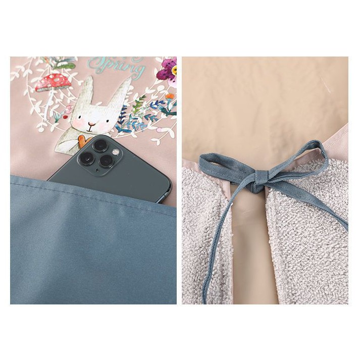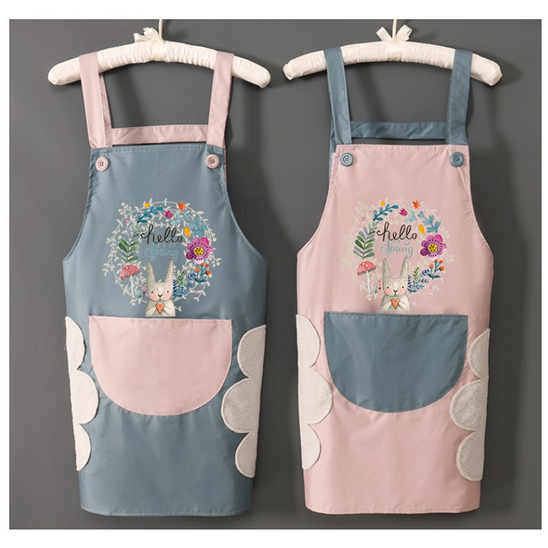 Giới thiệu Tạp Dề Hoạ Tiết Thỏ Hoa Xinh Chống Thấm Nước Kèm Khăn Lau Tay Và Túi Đựng Tiện Lợi