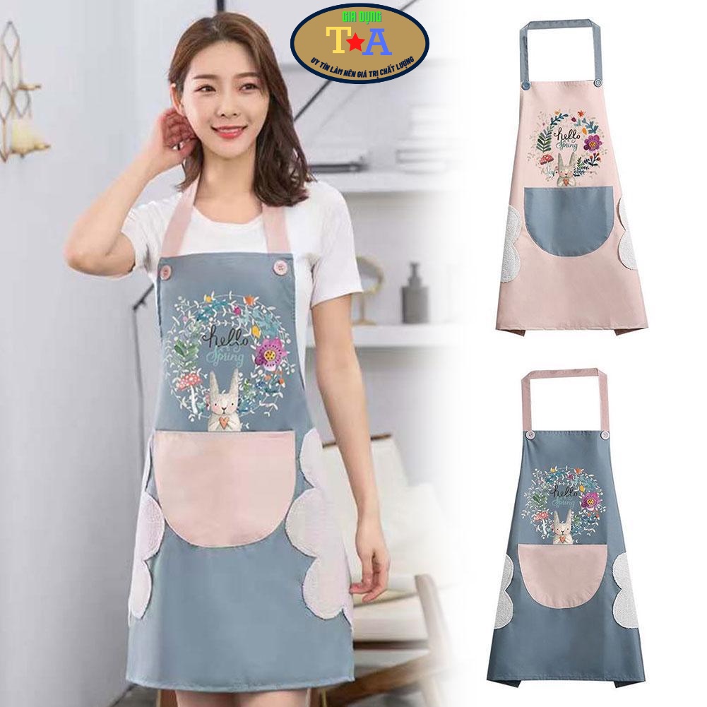 Tạp dề in hình chú thỏ chống nướcTạp dề hoa thỏ ( hình thỏ ) kiêm lun chỗ lau tay, thiết kế tiện lợi không thấm nước