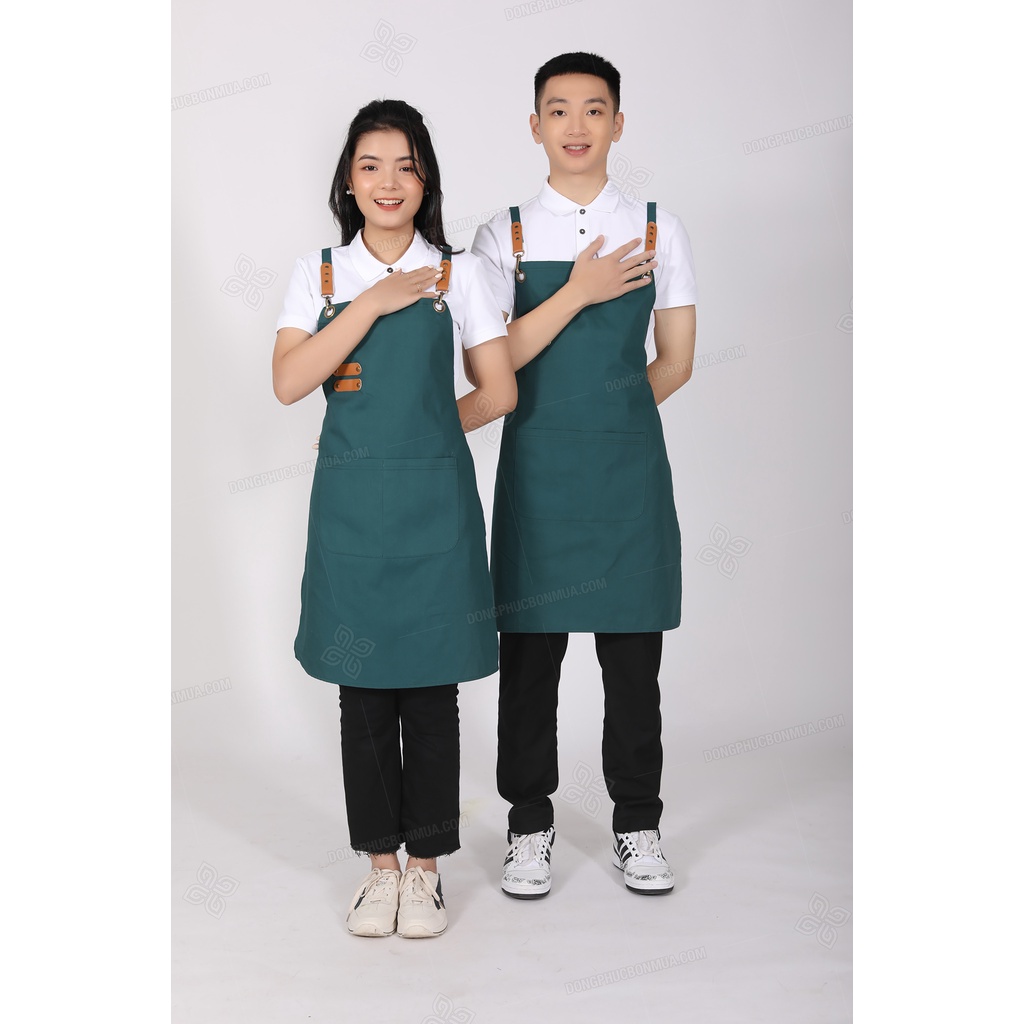 Tạp Dề Kaki Cao Cấp Màu xanh Phối Nâu Chống Thấm Nước Cao Cấp Cho Nhân Viên Phục Vụ sẵn hàng