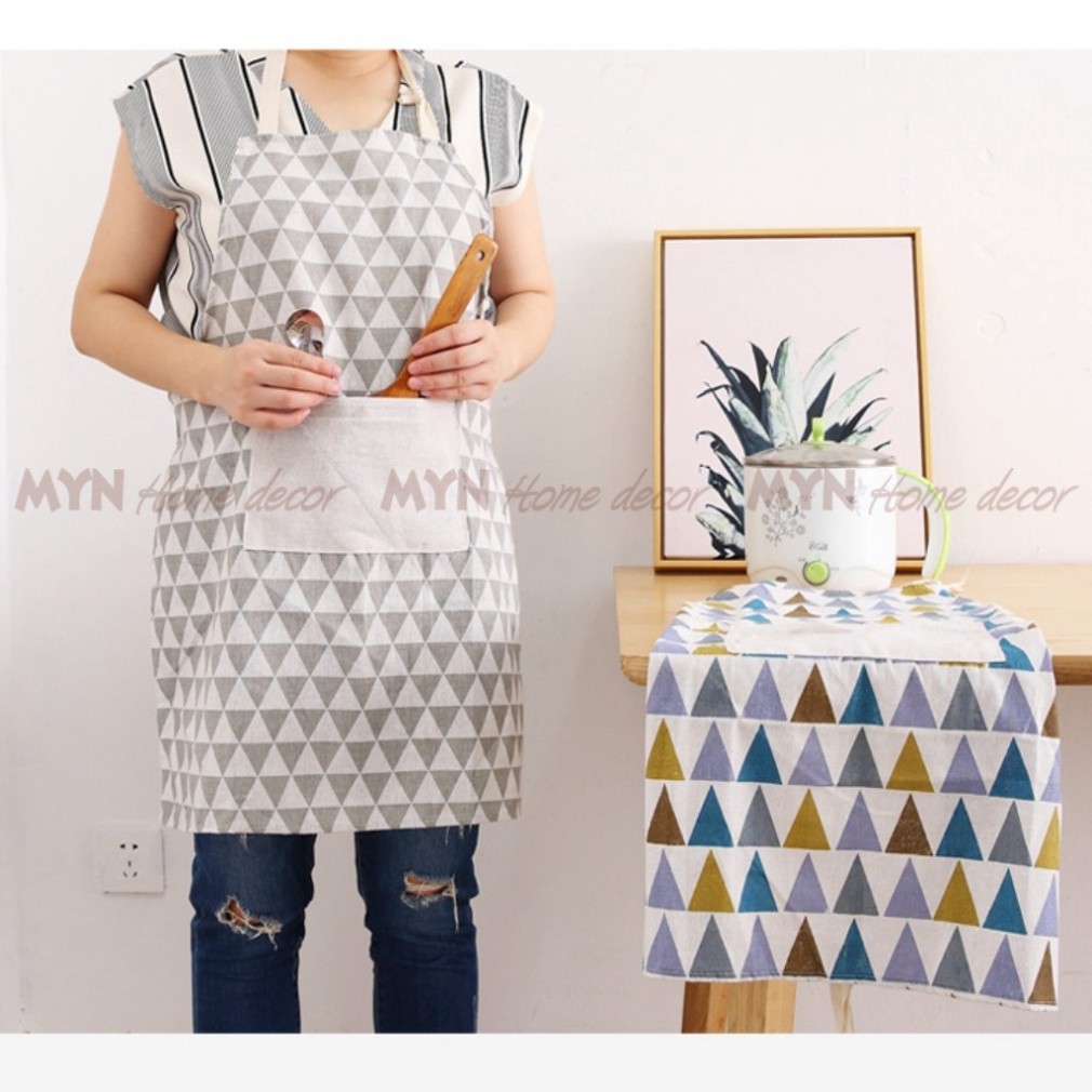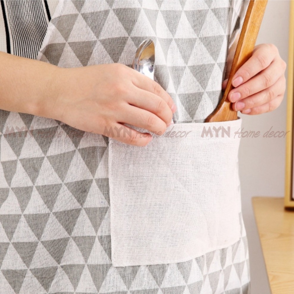Tạp dề kẻ caro canvas hàn quốc decor, trang trí nhà bếp vintage MYN Home