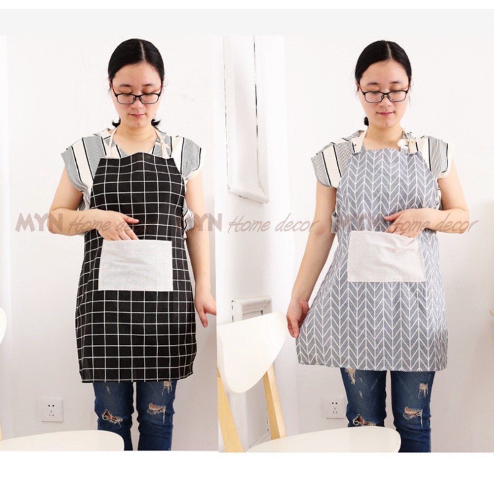 Nhà cửa & Đời sống > Dụng cụ nhà bếp > Tạp dề & gắng tay nấu nướng || Tạp dề kẻ caro canvas hàn quốc decor, trang trí nhà bếp vintage MYN HomeCòn hàng