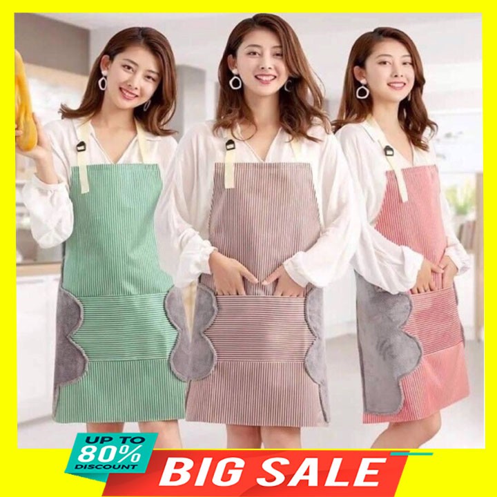 - Tạp Dề Chống Thấm với thiết kế thông minh khi được may kèm vải bông 2 bên hông giúp bạn lau tay nhanh chóng và sạch sẽ khi nấu ăn.