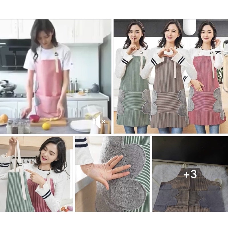 Nhà cửa & Đời sống > Dụng cụ nhà bếp > Tạp dề & gắng tay nấu nướng || Tạp dề kẻ hoa chống thấm nước có khăn lau tay bên hông, có túi đựng điện thoại - Tạp dề chống thấm nước cao cấpCòn hàng