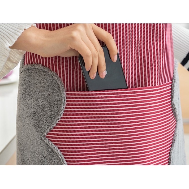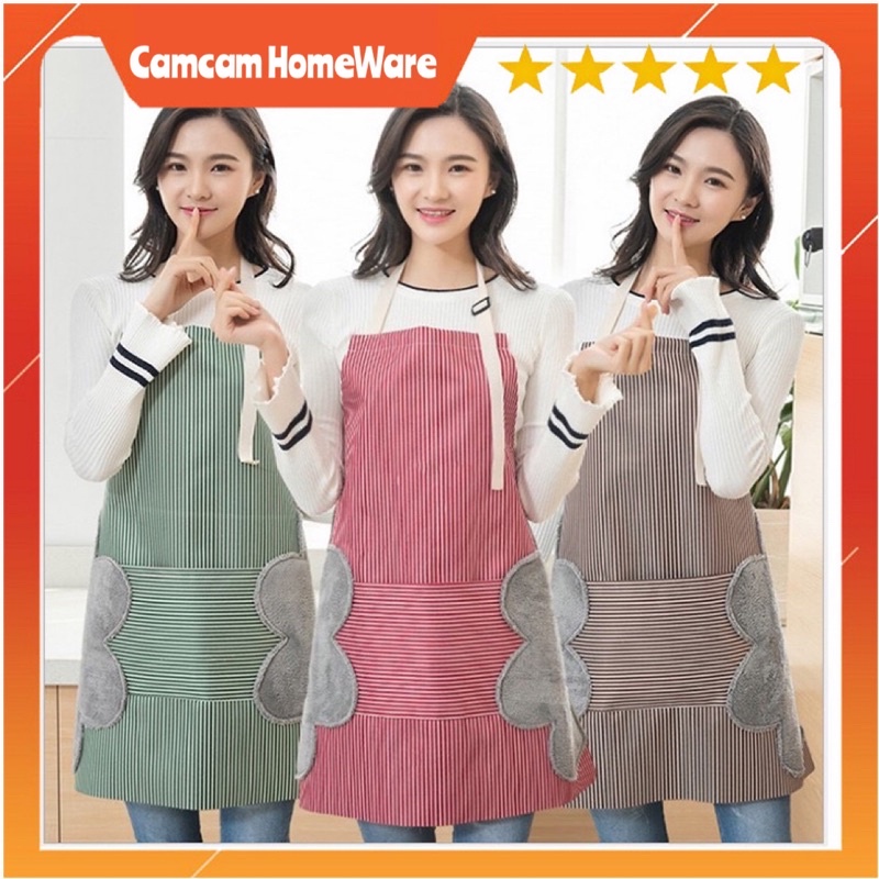 Tạp dề kẻ hoa có khăn lau tay bên hông, tạp dề chống thấm nước Camcam HomeWare