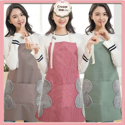 Tạp Dề Kẻ Hoa Có Khăn Lau Tay Bên Hông, Tạp Dề Chống Thấm Nước (GIAO MÀU NGẪU NHIÊN)