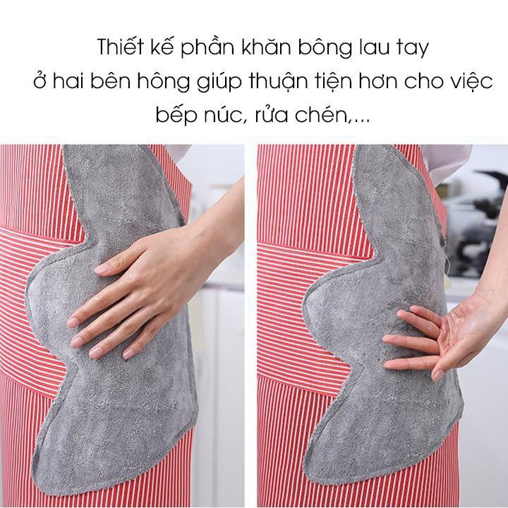Giới thiệu Tạp Dề Kẻ Hoa Có Khăn Lau Tay Bên Hông, Tạp Dề Chống Thấm Nước